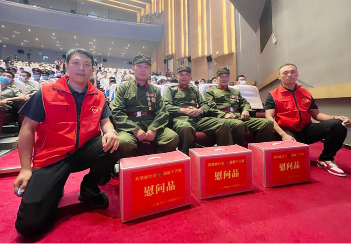 在“濟寧市慶祝八一建軍節(jié)文藝演出”現(xiàn)場,我們有幸見到了濟寧市抗日戰(zhàn)爭、抗美援朝、對越自衛(wèi)反擊的戰(zhàn)老兵代表,他們?yōu)榱吮Pl(wèi)祖國,離開家園,用滿腔的熱血和堅決斗志征戰(zhàn)戰(zhàn)場,換來了我們今天的幸福生活。借此機會山東聚源熱力公司組織退伍軍人送去節(jié)日的問候和慰問品。在與革命前輩們的交談中,我們感受的到戰(zhàn)火紛飛的革命歲月深深地刻進(jìn)他們的腦海里,愛國為民的革命初心在他們心中珍藏至今。為了抗擊敵人、保家衛(wèi)國,他們曾幾度將個人生死置之度外,沖鋒在前、毫不退縮。老人們又對我們年輕一輩寄予厚望,他們講道,現(xiàn)如今祖國繁榮富強,人民安居樂業(yè),希望你們年輕一輩,接過時代的接力棒,銘記永不磨滅的愛國精神,在新時代建立屬于你們的功勛。